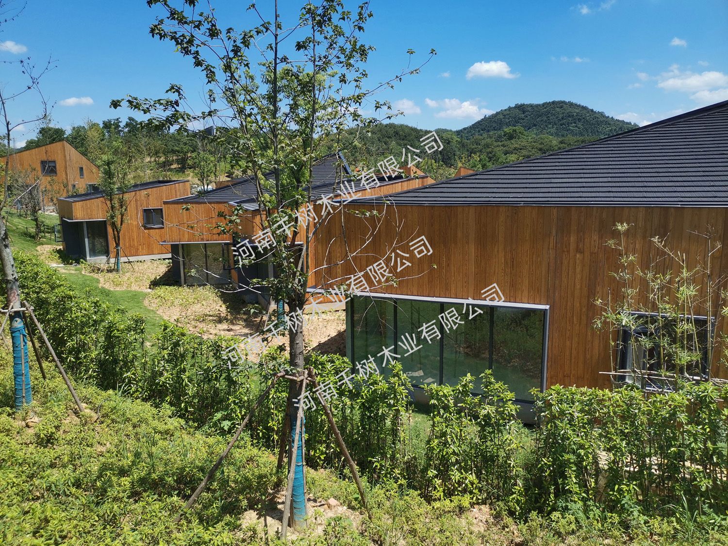 該項目2019年開工,2020年五一期間景區(qū)試營業(yè),民宿木屋選址根據(jù)地形錯落有致。選材精良,內設精致。