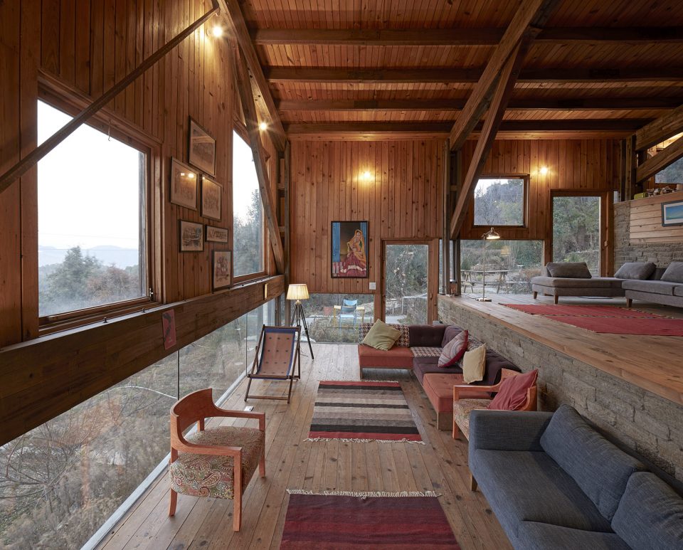 這所房子坐落在海拔2000米的Nanital地區(qū)的Satkol村,周圍只有傳統(tǒng)的鄉(xiāng)村房屋,反映出當(dāng)?shù)剞r(nóng)民的簡樸生活。它是為自用而建的度假屋。