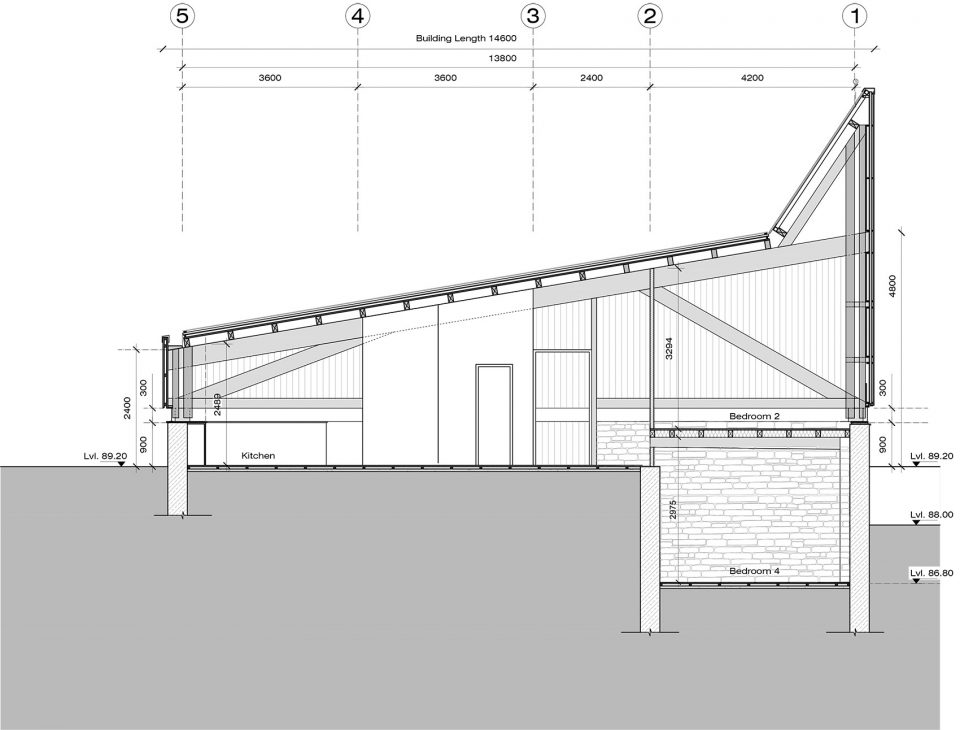 4個(gè)14.50 m跨度的sal木框架由多個(gè)膠合木板和薄鋼拉桿組成,支撐著整個(gè)用木材覆蓋的屋頂、隔熱的建筑外殼、整個(gè)木質(zhì)的夾層,并塑造了標(biāo)志性的雙層玻璃天窗。整個(gè)房子被懸掛在這些堅(jiān)固的桁架框架中,沒有任何中間柱的支撐,使得一種不受干擾的地形輪廓流進(jìn)入靜謐的松木鑲板的室內(nèi)空間。精心雕琢的方形窗戶,朝向各個(gè)方向,讓使用者得以禪觀各個(gè)山峰和不斷變化的云。