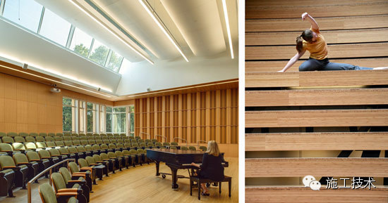 波特蘭里德學(xué)院表演藝術(shù)大樓建筑特色:里面有一個(gè)200座的劇院和靈活的座位配置,一個(gè)100座的非正式的黑盒劇場(chǎng),100座的合唱排練廳和100座劇院性 能實(shí)驗(yàn)室。教學(xué)和排練空間包括:多媒體實(shí)驗(yàn)室和資源庫(kù)、兩大彩排舞蹈的劇院、服裝設(shè)計(jì)工作室,共享的教室和教師辦公室。