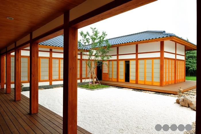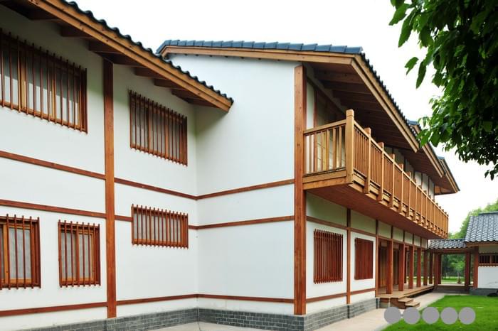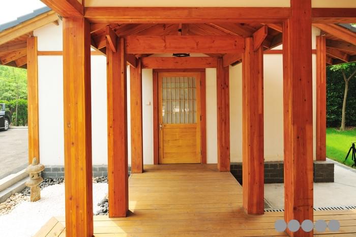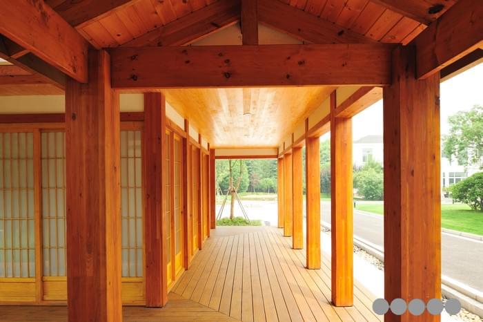 這是一座會(huì)所性建筑,一樓有接待門(mén)廳、保安室、會(huì)議室、會(huì)客大廳、酒吧視聽(tīng)室、棋牌室、獨(dú)立車(chē)庫(kù)等。本案設(shè)計(jì)建造者十分感慨的一點(diǎn)是,日本建筑業(yè)在堅(jiān)持傳統(tǒng)的基礎(chǔ)上大量吸引現(xiàn)代歐美的木建筑概念,包括結(jié)構(gòu)和節(jié)點(diǎn)方式,新的材料工業(yè)進(jìn)步以及建筑的節(jié)能保溫方法等,使得傳統(tǒng)的日式建筑得以在充實(shí)革新后,不斷發(fā)展,仍然可以滿(mǎn)足今天人們的生活居住要求。從中可以給眾多致力于繼承和發(fā)揚(yáng)中國(guó)自身建筑傳統(tǒng)的專(zhuān)業(yè)人士啟示。