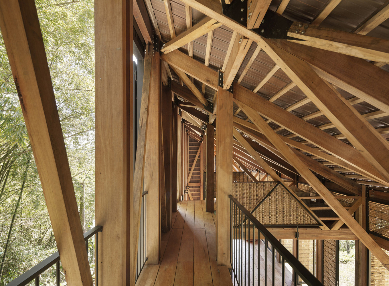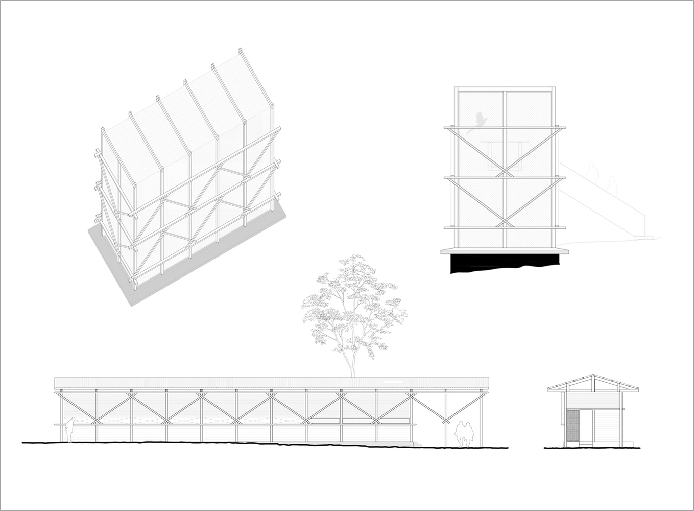 “CasaTejida設(shè)計(jì)和建造的方法受參數(shù)化生產(chǎn)和開源系統(tǒng)的啟發(fā)和幫助,變得更易于理解。這個項(xiàng)目承諾去探尋預(yù)制的方式和更高標(biāo)準(zhǔn)的手工藝,在此工藝下,會生產(chǎn)出像拼圖碎片一樣的木材和金屬件,以便在場地快速的安裝。”