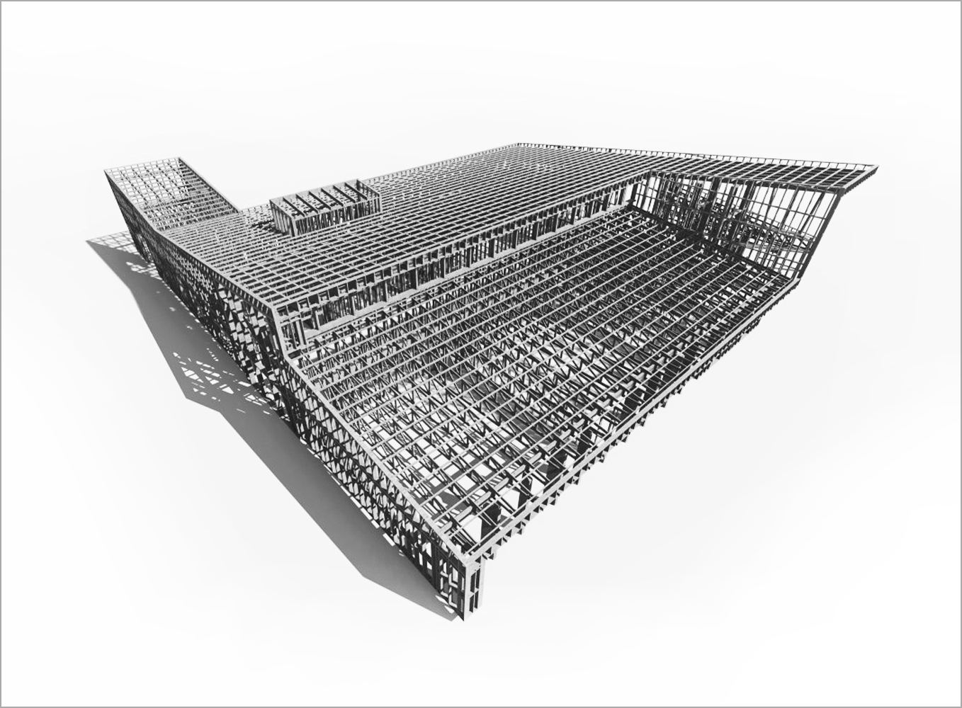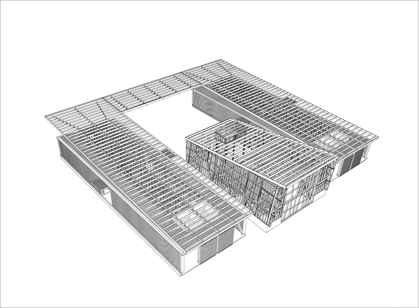 “該結(jié)構(gòu)主要用輻射松和層壓木建造。該結(jié)構(gòu)使用 Cadwork 軟件建模,并使用 CNC 技術(shù)執(zhí)行,從而實(shí)現(xiàn)快速、干凈的組裝并減少項(xiàng)目的整體碳足跡。”