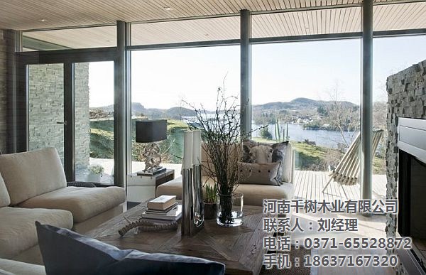 河南木別墅的尺寸和視野,是我們喜歡的一個焦點。特別對于度假木屋,在室內(nèi)平靜的與戶外自然景觀對話,是大窗戶的重要意義。大窗戶在木屋中,提供最佳漂亮的風格,當然對于木屋設計也是至關(guān)重要,如何漂亮美觀還要節(jié)能。如:窗戶與墻壁空間的比例、窗戶的形狀和尺寸及屋頂?shù)呐渲枚际窃O計的考慮因素,方向葉是很重要的,可能會建議包括深檐和傾斜的窗戶方向以便在減輕陽光。