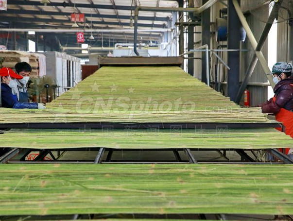 經(jīng)浸膠、二次干燥后的竹片▽