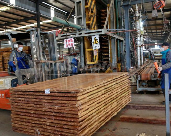 其包含壓制→干燥、浸膠→二次干燥→熱壓、砂光等。