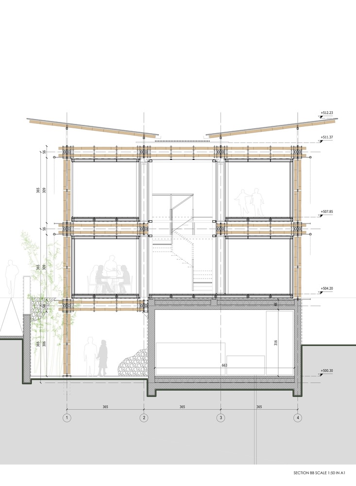 對于房子的結(jié)構,我們探索了以竹子為建筑材料的新方法。對我們而言,可持續(xù)發(fā)展不僅僅是使用竹子等天然材料,而是設計適當?shù)氖┕し桨福?/span>