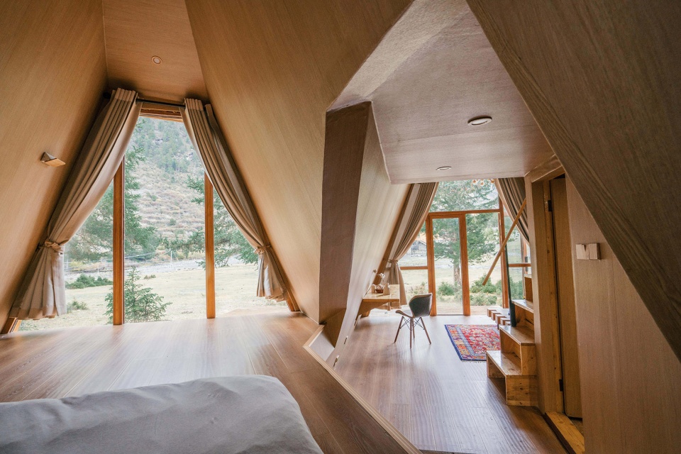 同時木材自身具備吸收和釋放濕氣的溫作用,能夠緩和室內(nèi)濕度的變化,透氣性與保溫性極佳的板材結(jié)構(gòu)給人一種清爽、舒適的宜人感覺。在磚混結(jié)構(gòu)的房屋里要取得滿意的制冷和制熱效果必需使用雙頻功率的主機(jī)。由于房屋散熱快,機(jī)器的日開機(jī)時間長,每月的電費(fèi)至少加倍。與之相比,木屋民宿可節(jié)能60%。這就是鄉(xiāng)村振興木屋民宿冬暖夏涼的原因!